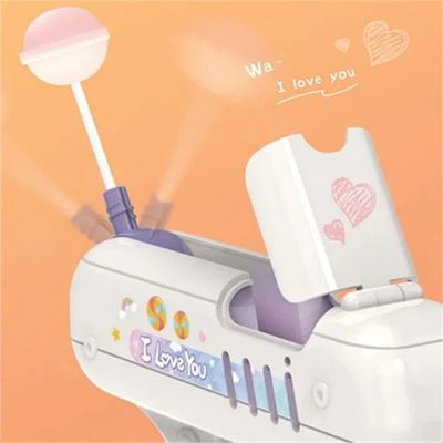 • Einzigartiges Design: Das einzigartige Design der Aufbewahrung von Lutschern in Form einer Pistole bringt Kindern mehr Spielerlebnis.